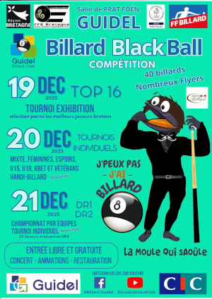 Le samedi 22/11 à 08h30, les convoqués du tournoi mixte (limité à 288 joueurs) entrent en lice, suivi de l’épreuve reine, le Blackball Master à 09h00. Trois bretons sont engagés à l’année dans cette compétition majeure, Cyrille Loncle (Dinard), Benjamin Piel (Quimper) et Thomas Louboutin (Quimper).