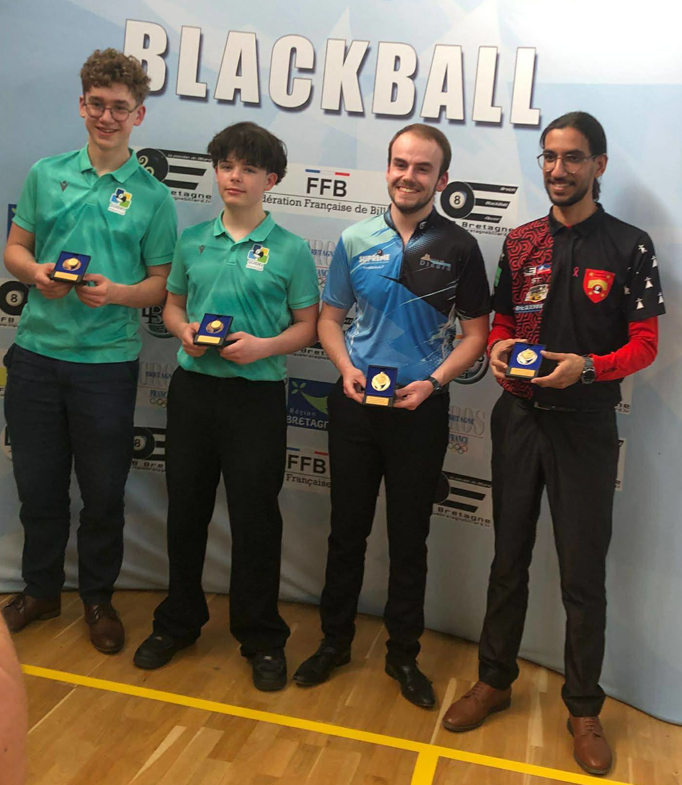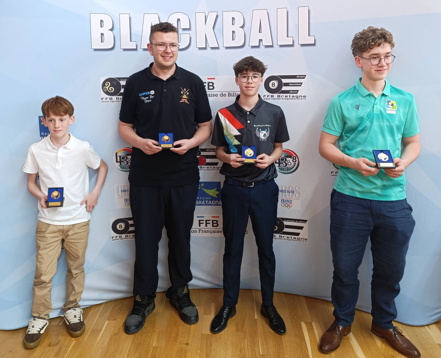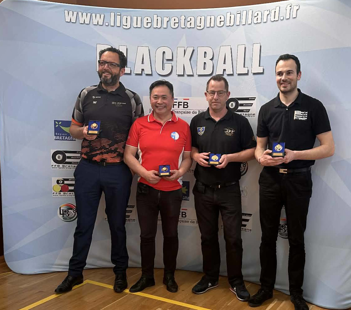 Dans l’épreuve majeure, le Breizh Blackball Elite Tour, après une finale perdue au dernier TR, le roscovite Stéphane Dumont renoue avec le succès et remporte sa 4e finale (6/4) de la saison face à Benjamin Piel. Belle performance également du pensionnaire de Quimper DN1 qui était absent ces dernières semaines pour raison de santé. Le vainqueur de l’édition précédente Emmanuel Menant (Guidel) et le prometteur Calvin Creach (Dinard DN2) s’inclinent en ½ finale. Cédrick Le Guennec (Roscoff), Eric Trotel (Rennes), Franck Le Tynevez (Roscoff) et Anthony Le Doussal (Guidel) s’arrêtent au stade des ¼ de finale. Au classement individuel, Stéphane Dumont consolide sa première place avec 1042 points, Emmanuel Menant suit à 169 points. Franck Le Tynévez conserve de justesse sa 3e place avec 7 points d’avance sur le 4e, Anthony Le Doussal.