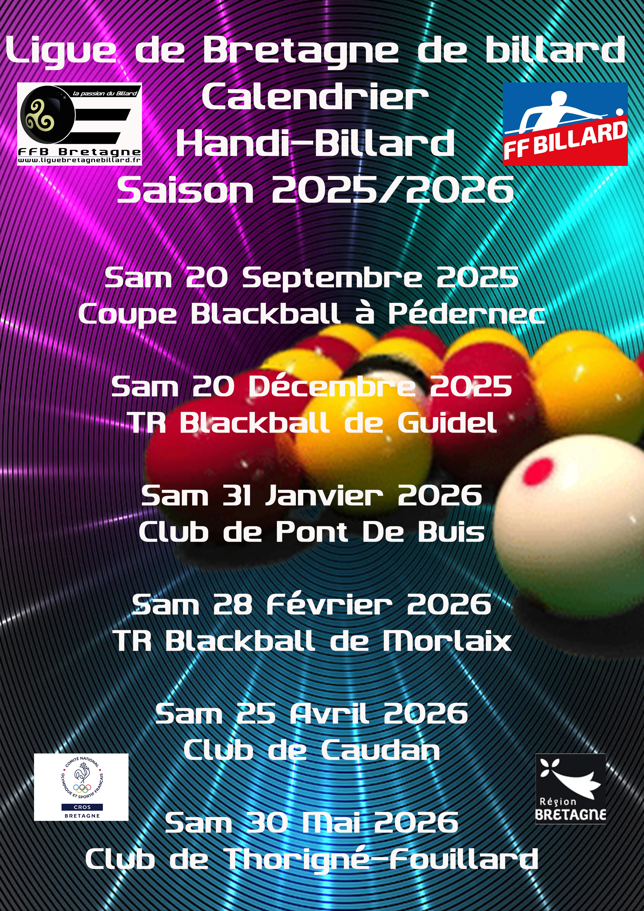 Le samedi 31 janvier prochain aura lieu au club de Pont De Buis, le troisiéme tournoi Handi-Billard de la saison 2025/2026.