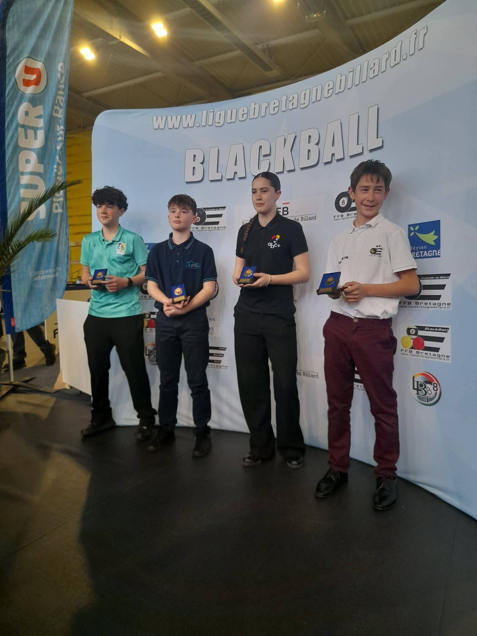 Enfin chez les U15, Maïdi Hochet (Maen Roch) décroche sa première victoire face à son camarade de club, Konwald Peltier. Yael Perron (Guidel) et Elouen Courtel (Loudéac) complètent le podium