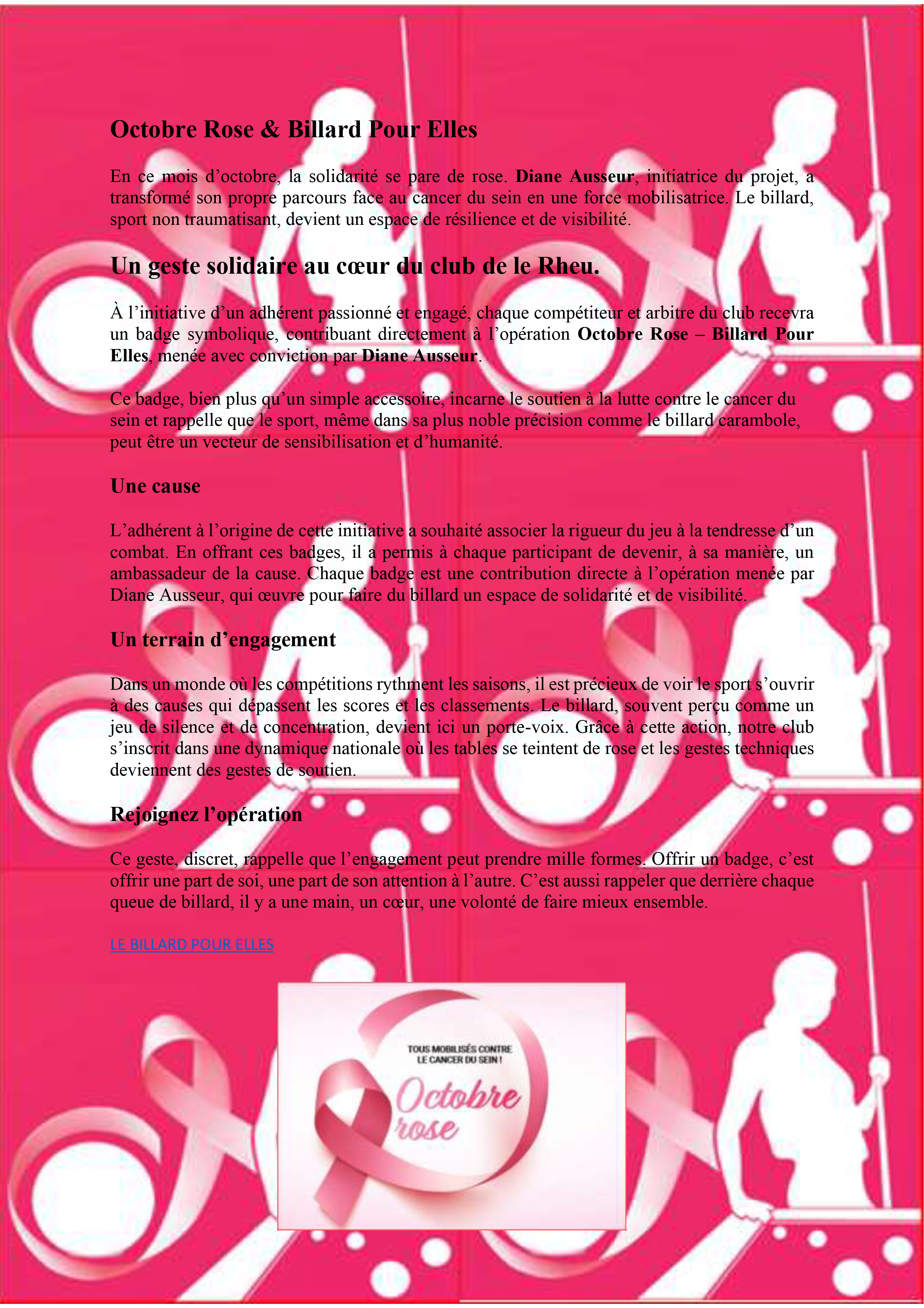 Octobre Rose & Billard Pour Elles
