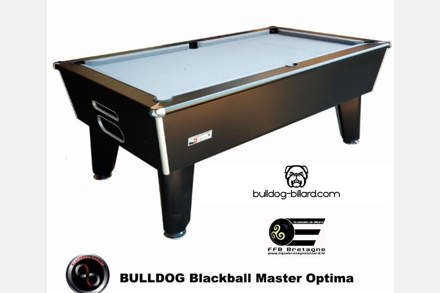 La ligue de Bretagne de billard travaille depuis plusieurs mois pour l'acquisition de son propre parc Blackball pour nos tournois Régionaux après le souhait de notre prestataire historique, Breizh Billard de vendre son parc.Suite au vote à la dernière Assemblée Générale de la Ligue pour l'activation du prêt nécessaire pour un tel achat, le comité directeur a travaillé sur tous les choix possibles de modèles de billard.Après plusieurs réunions, le comité directeur c'est positionné sur :- La location d'une remorque avec gerbeur comme utilisée sur les TN pour faciliter le montage et démontage des billards plus rapidement, moins contraignants et moins dangereux, tout en préservant au mieux nos futurs billards.- Validation du devis de la société BULLDOG, pour l'achat de 32 tables neuves BULLDOG BLACKBALL MASTER OPTIMA.BULLDOG Blackball Master Optima….. Pourquoi ce nom ?
